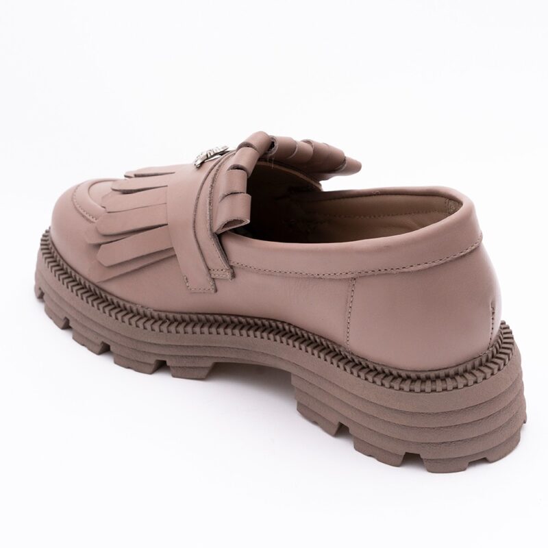 Pantofi Loafers Damă din Piele Naturală Roz Pudra cu Franjuri Vagam 2086