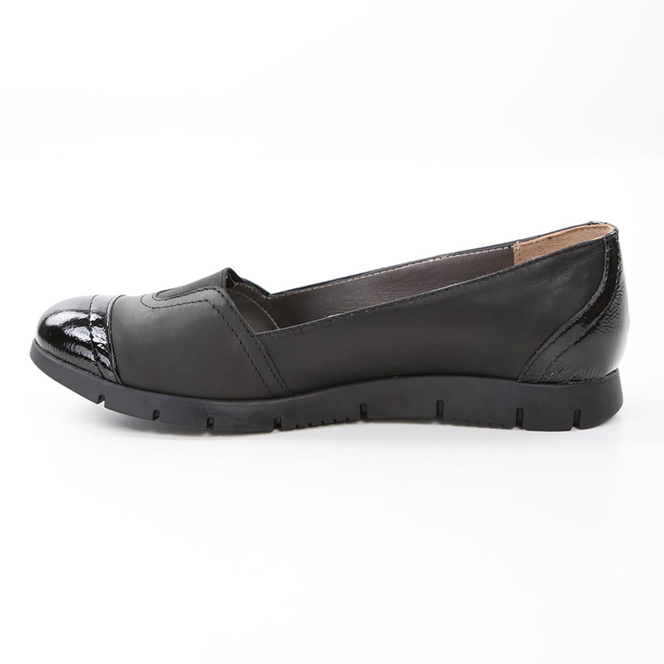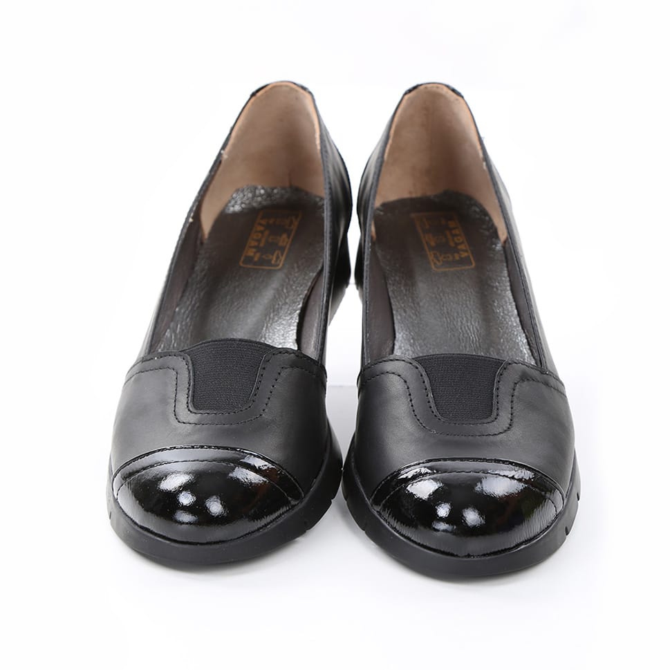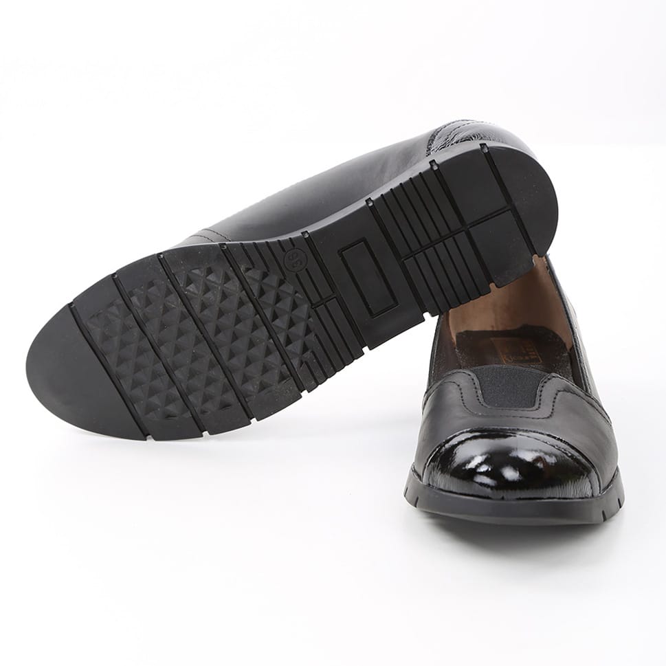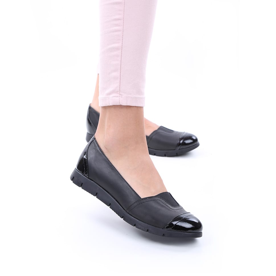 Balerini dama , din piele naturala de vitel avand aplicata piele lacuita atat in varf cat si la staift.