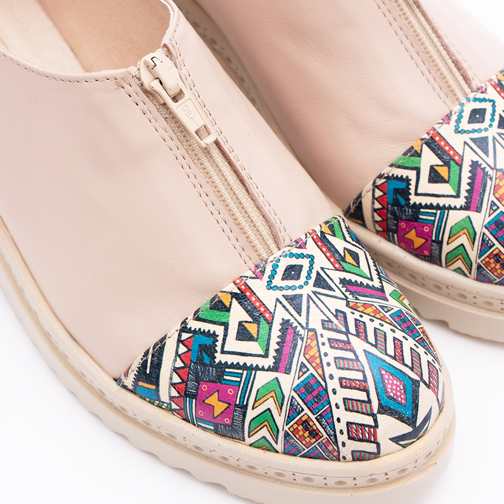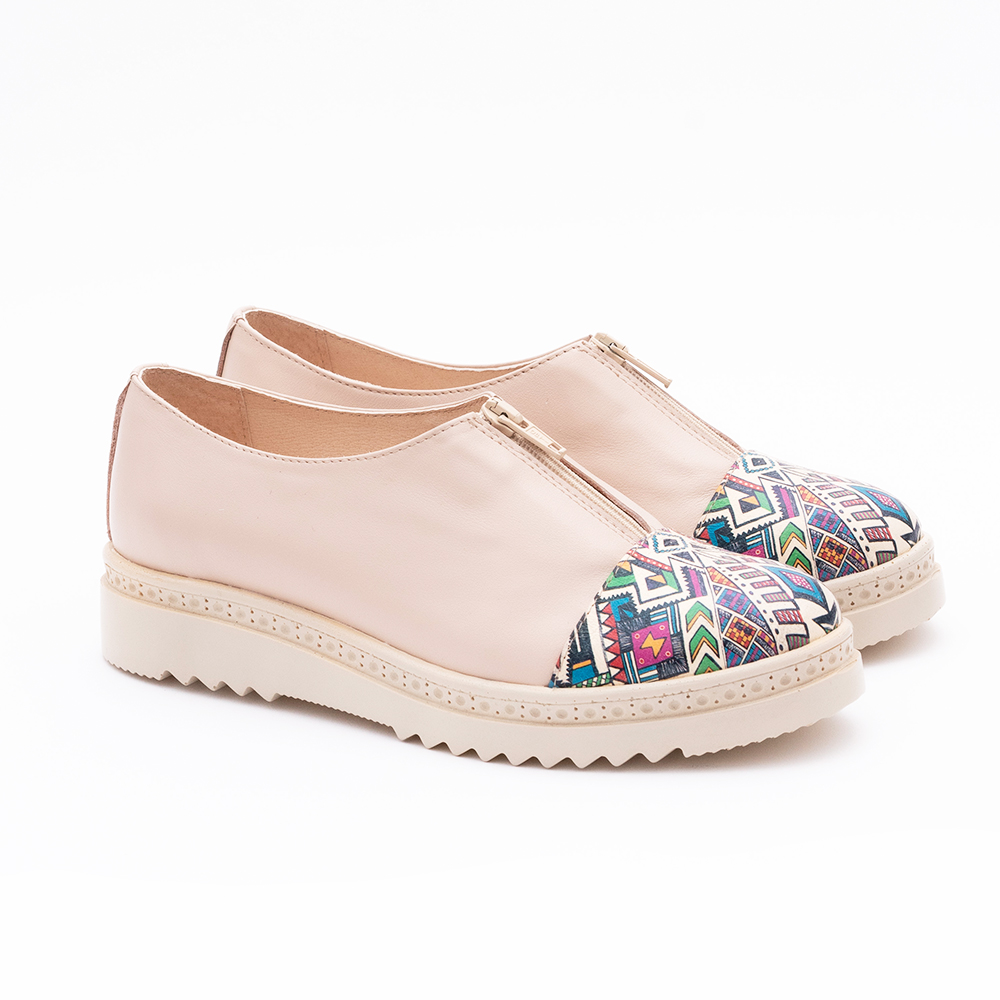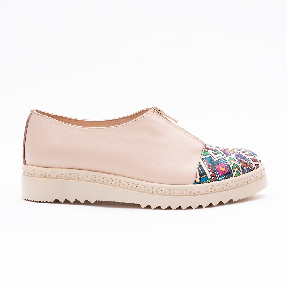 Pantofi Crem cu Fermoar si Talpa Inalta 1640