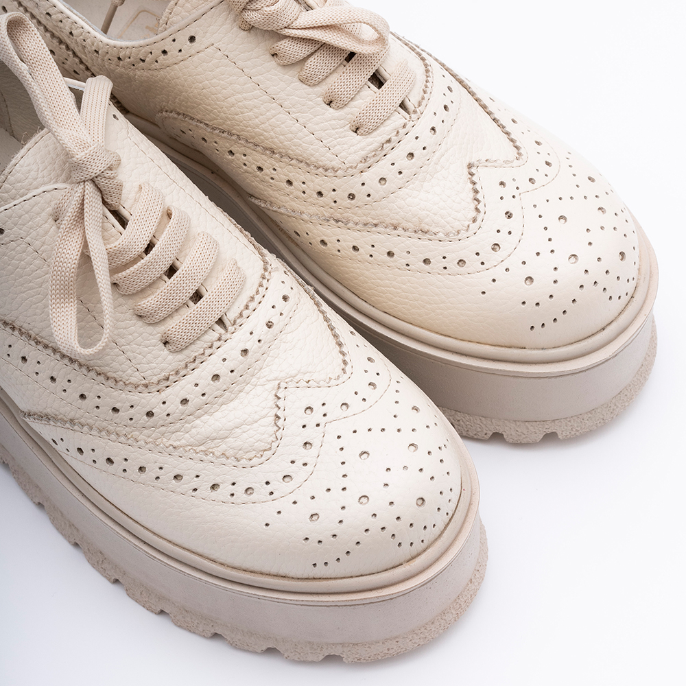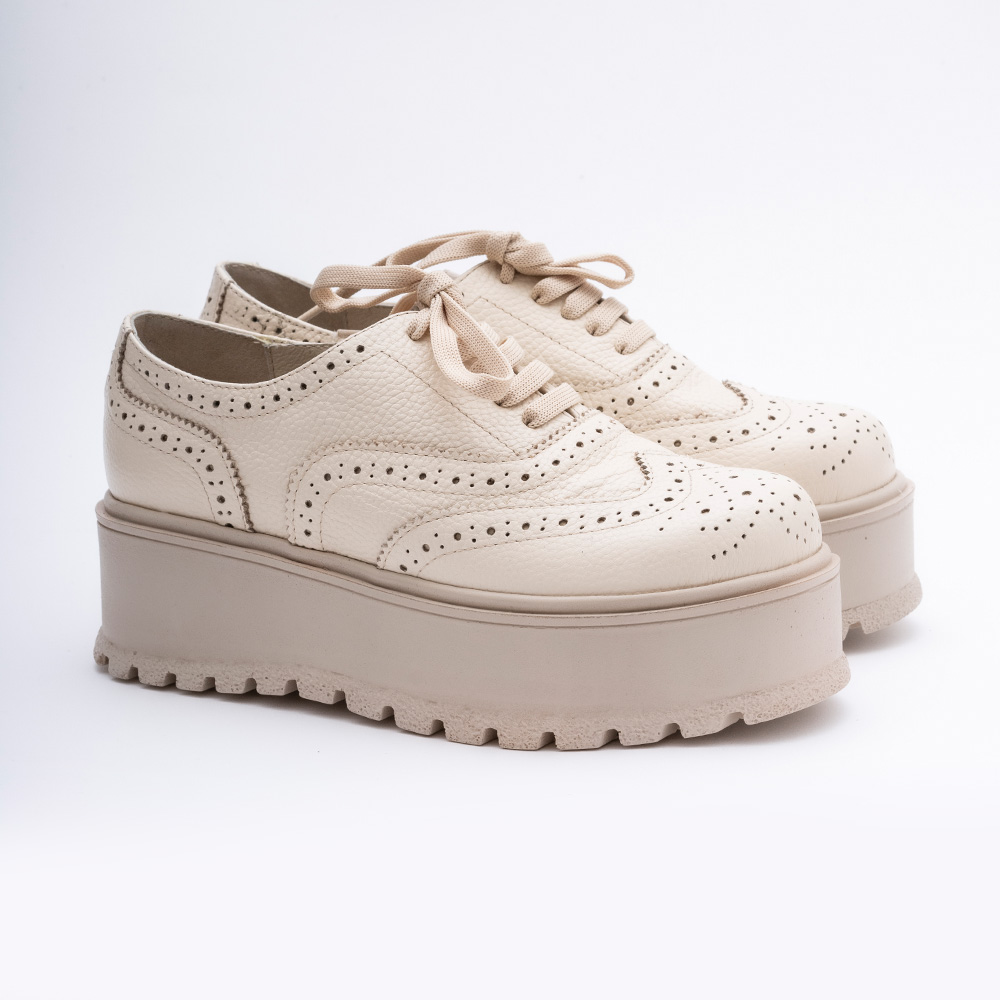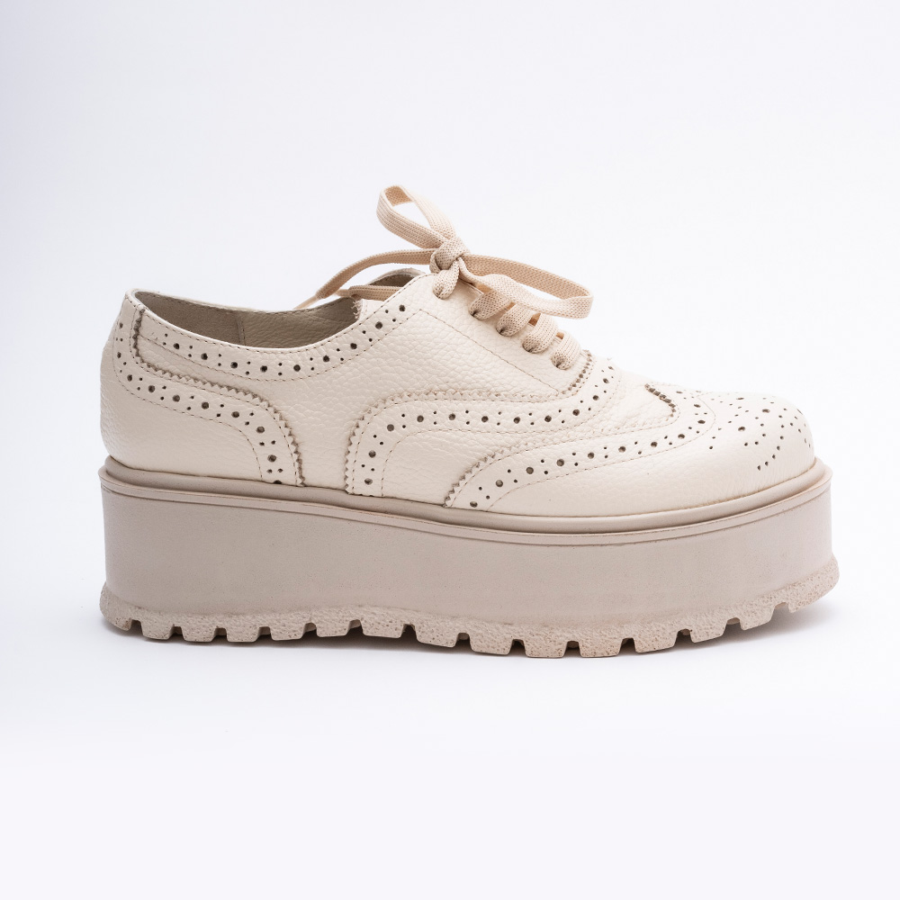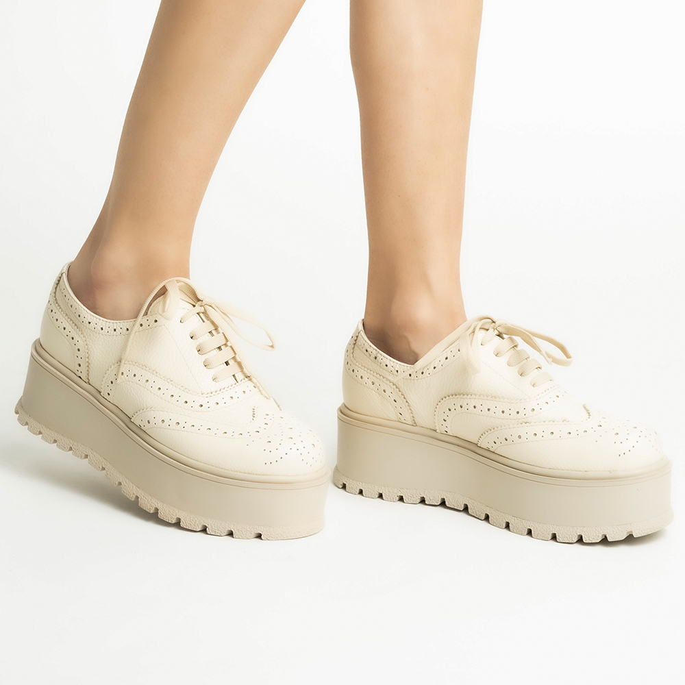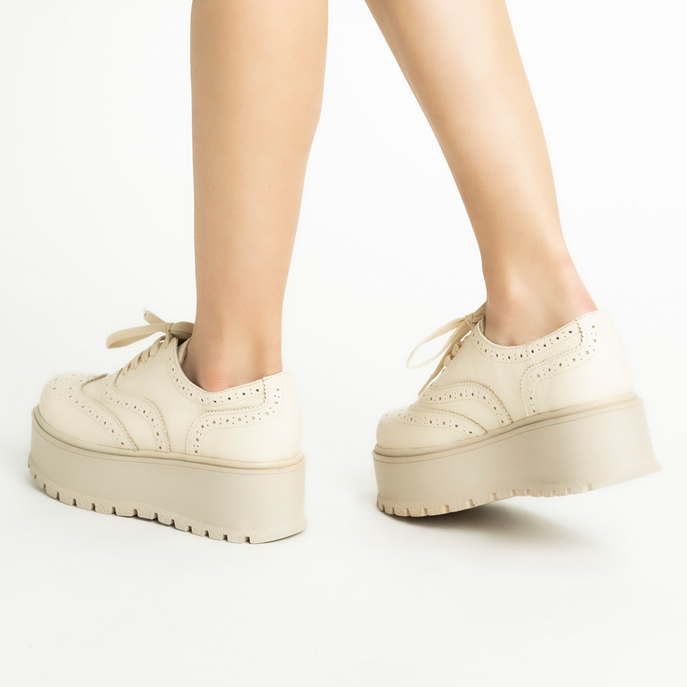 Pantofi Crem cu Siret si Talpa Inalta 1707
