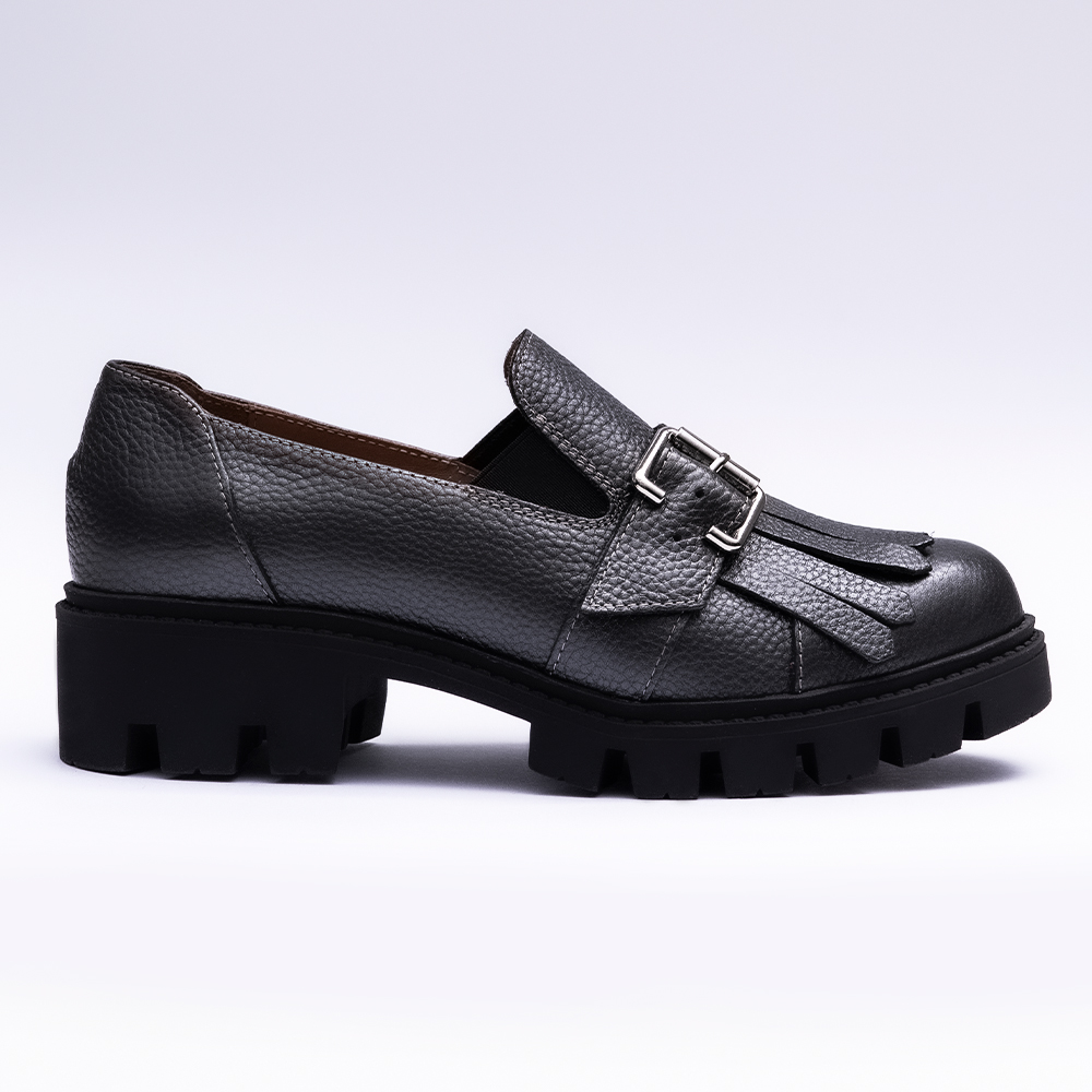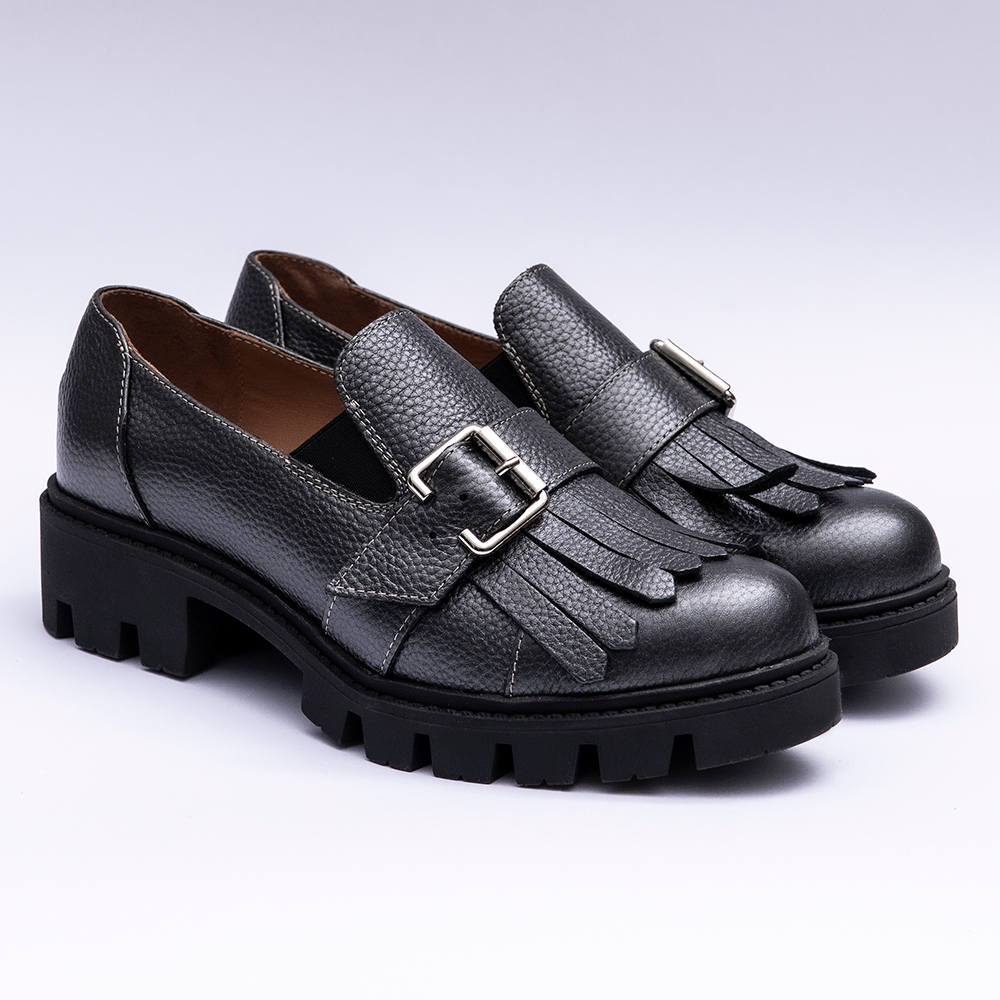 Pantofi Dama Loafers Gri Antracit cu Talpa Inalta Vagam 2107