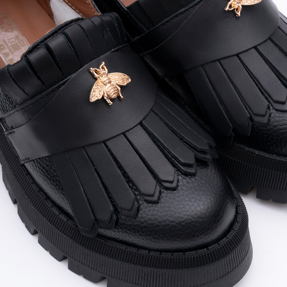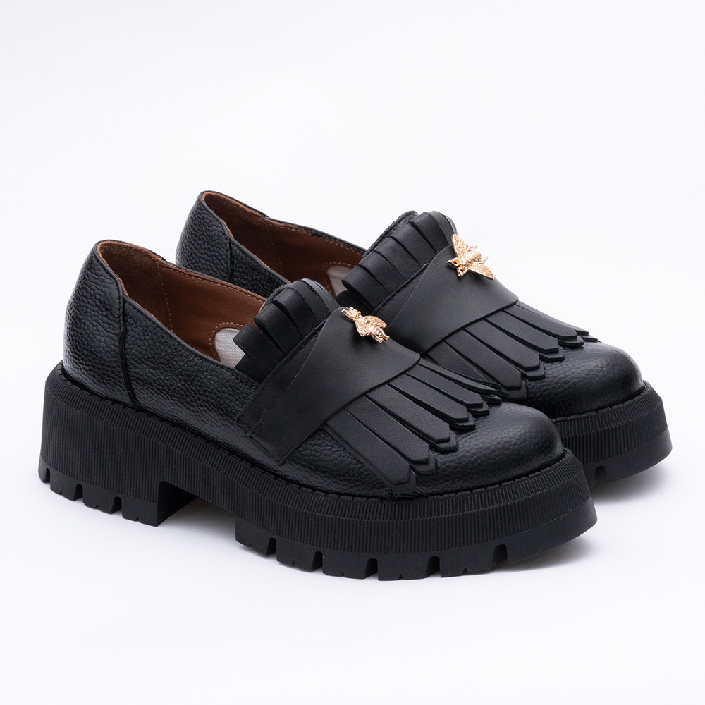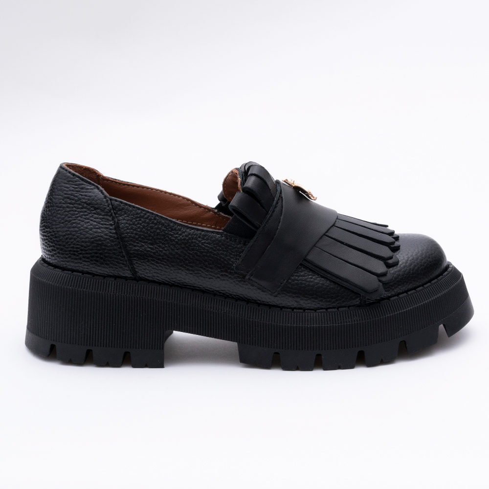 Pantofi Negri cu Talpa Inalta si Franjuri Vagam1664
