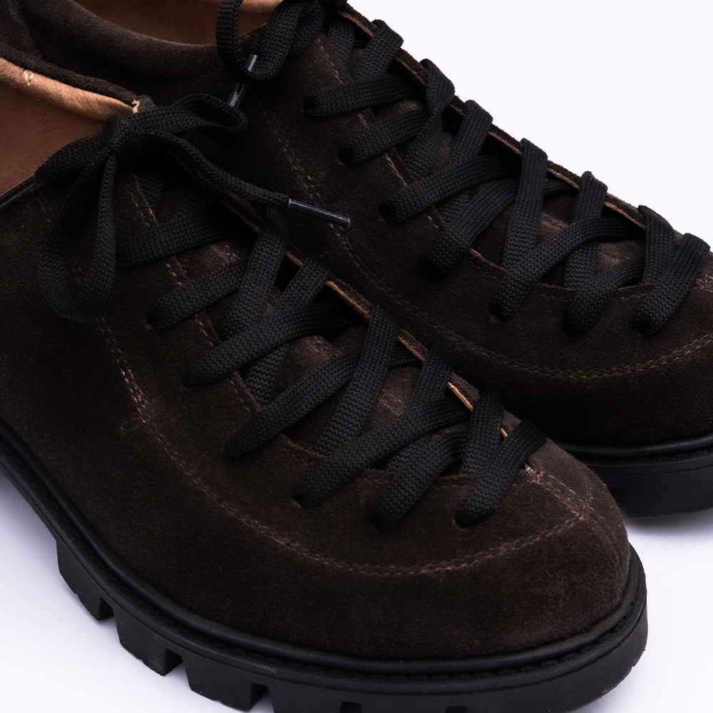 Completează-ți garderoba cu o piesă ce îmbină estetica retro cu funcționalitatea urbană: pantofii Oxford din piele naturală întoarsă (velur), într-o nuanță caldă de maro ciocolatiu. Fabricați în România, acești pantofi tip sneaker-oxford sunt definiția versatilității, fiind partenerul ideal pentru zilele active care necesită un look pus la punct.