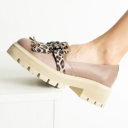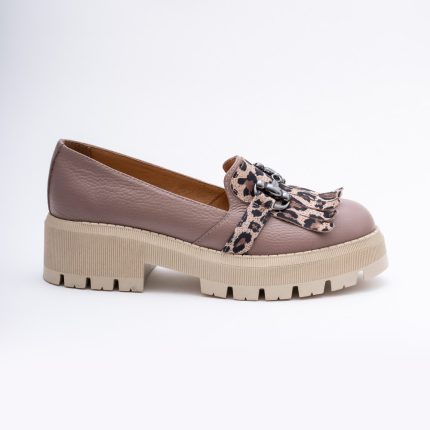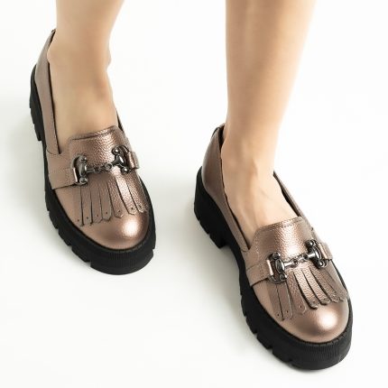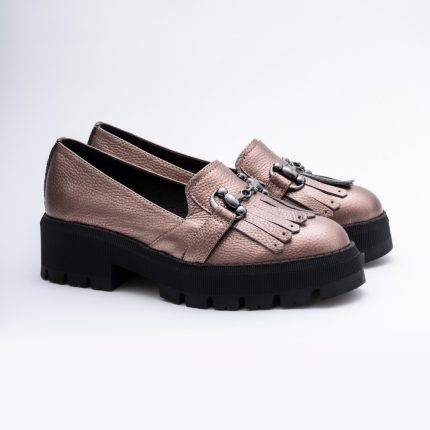 Pantofi Loafers Roz Pudra cu Franjuri si Talpa Inalta Vagam1749