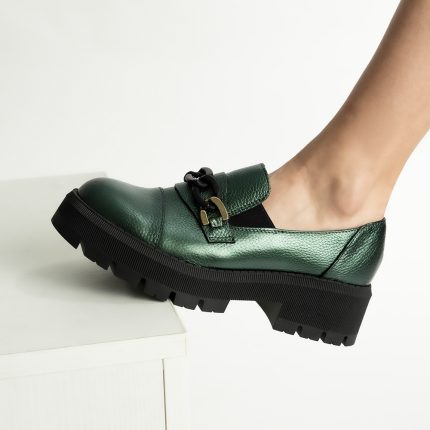 Pantofi Loafers Verzi cu Talpa Inalta Vagam1751