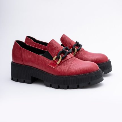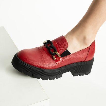 Pantofi Loafers Rosii cu Talpa Inalta Vagam1744