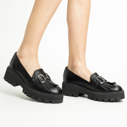 Pantofi Loafers Negri cu Franjuri si Talpa Inalta Vagam1762