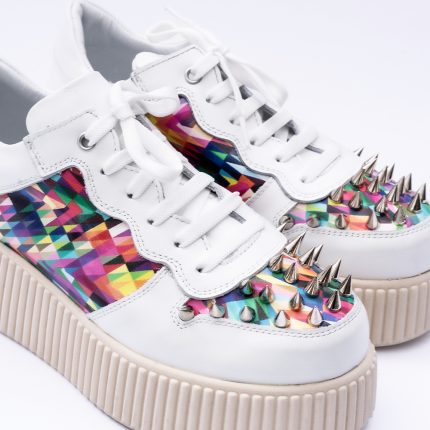 Pantofi Albi cu Imprimeu si Talpa Inalta Vagam 1967